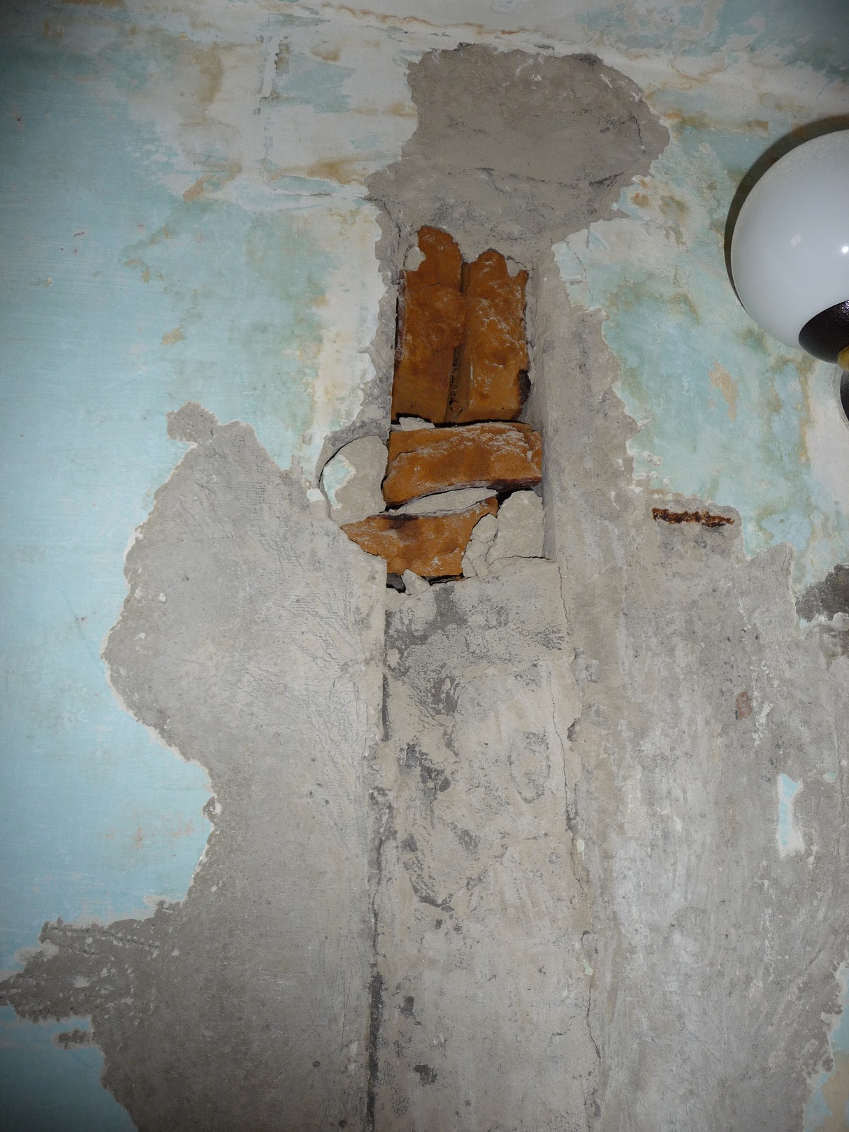 Во первых - куча штукатурки на стенах - может плохо держаться, во вторых - я так подозреваю, что противоположная стена у него, как и у меня - дерево) |