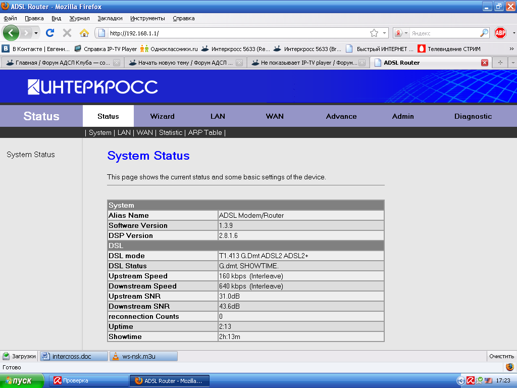 установила плеер, скачала список каналов..Модем ИНТЕРКРОСС!.. когда залезаю в настройки модема, постоянно одна и та же картинка, не смотря на то, что выбираю разные опции! help me!