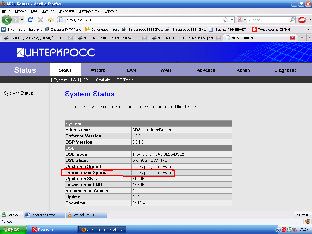 смысл? все равно с такой скоростью как у тебя(Upstream speed 160 kbps и Downstream speed 640 kbps) телевидение работать не будет |