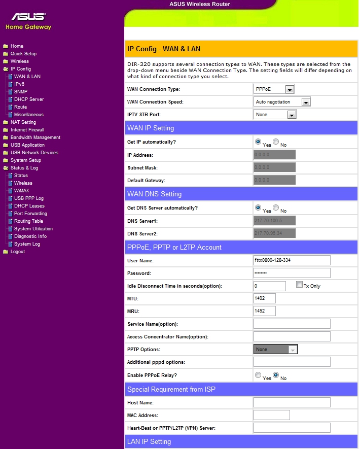 3. Подключил роутер к 3 порту ONT, выбрал PPPoE, указал логин и пароль, IP и DNS - автоматически (хотя пробовал и статику).