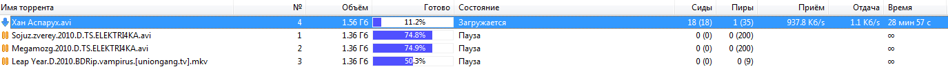 Да аспарух просто редкостный, мало раздающих, у меня минут сорок будет полностью качаться, а так новинки на скорости 2.5Мб/с обычно льются. Скорость по тарифу 20мбит/секунду за 500рублей месяц, тариф бали, оператор Дом.ру, про внутрисеть уже забыл столет назад, это прошлый век, все есть на торрентах!
