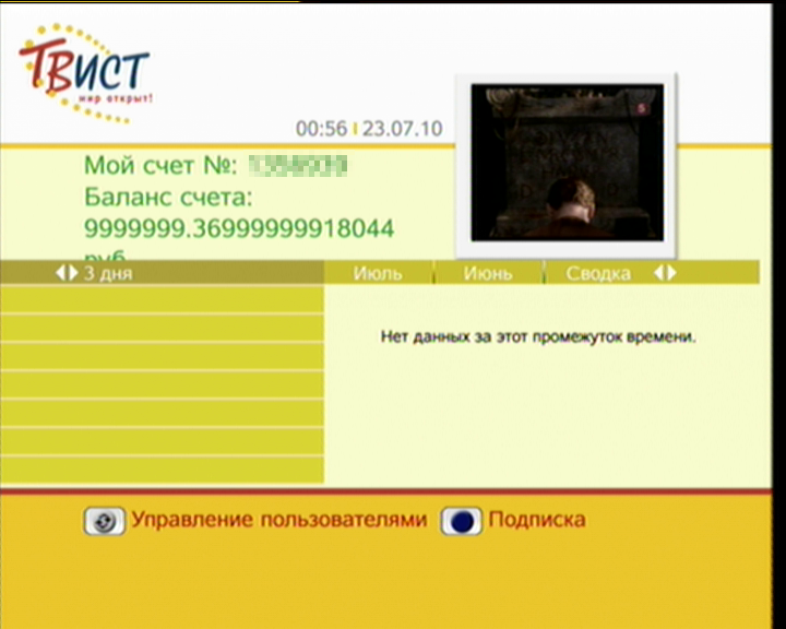 в общем как то раз взглянул на счет на твисте)))оказалось что там 9 миллионов с лишнем рубликов))))что это????ошибка или так надо????можно ли смотреть фильмы и не заставят ли потом платить за это??)))