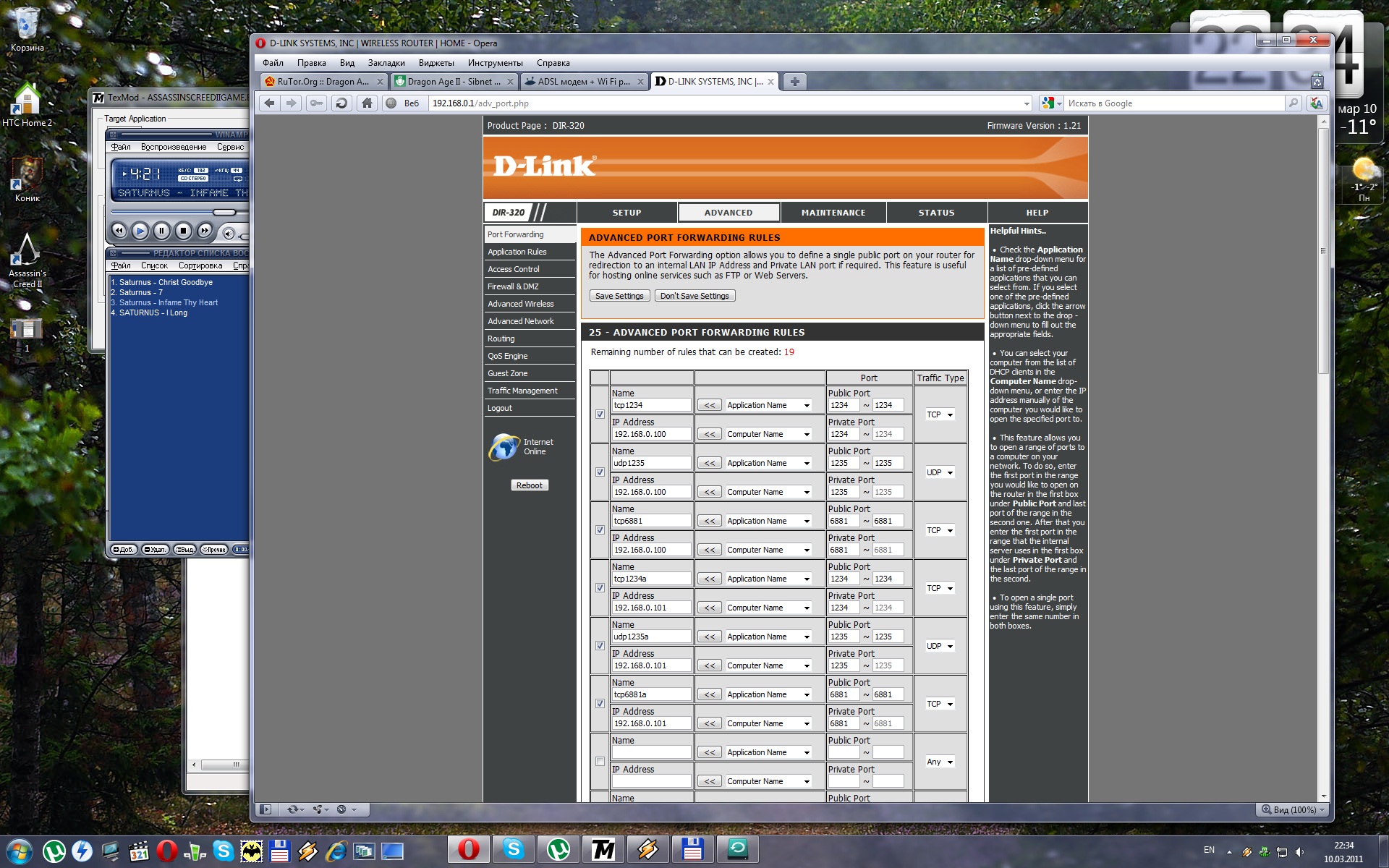 Подскажите как настроить flylinckDC, когда подключен WiFI Dir400.....без wifi прекрасно работает flulink, а с вайфаем исходящая скачка есть,а входящая не проходит...винда 7 на компе...