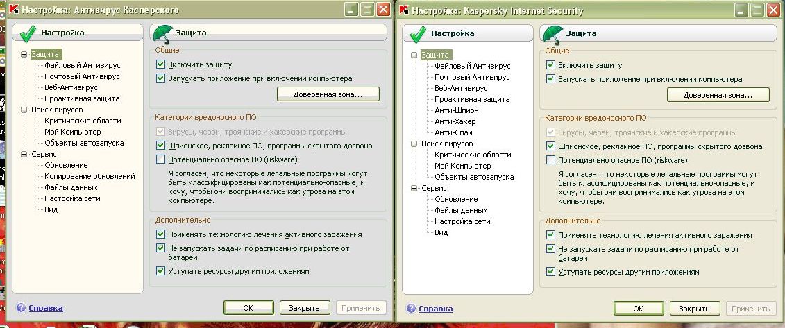 В настройках есть только:1.ЗАЩИТА(файловый,почтовый,веб антивир и проактив.защита) 2.ПОИСК ВИРУСОВ 3.СЕРВИС(обновление,файлы данных,настройка сети,вид) и все Или я не туда лезу?