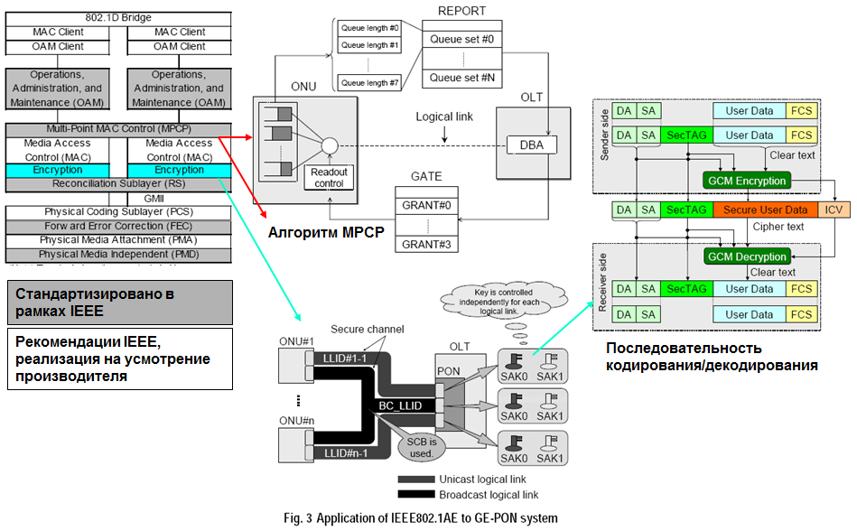 В GEPON - у нас тоже применяется шифрование трафика. Производитель назвал 2 алгоритма которые применяются один из них уже обозначеный AES-шифрование. |