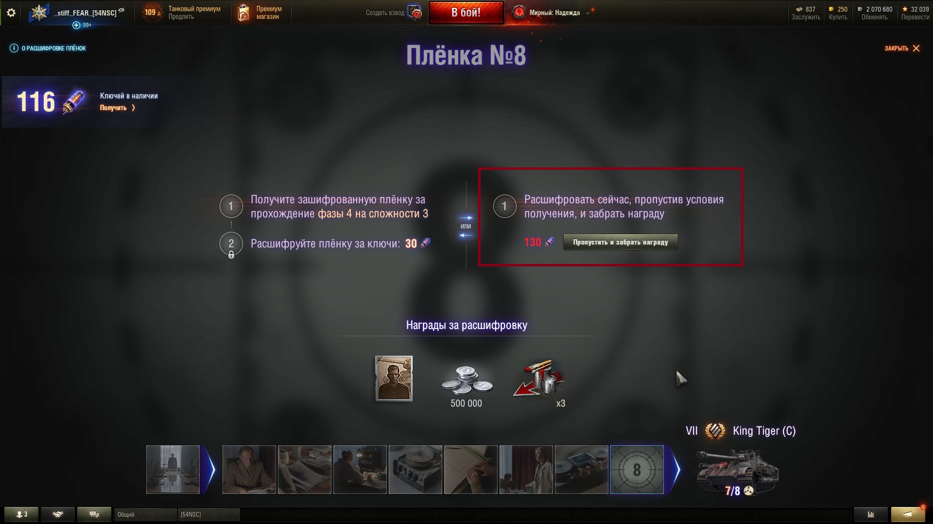 капец, я профукал 130 ключей открыл 8 уровень а танк не получил