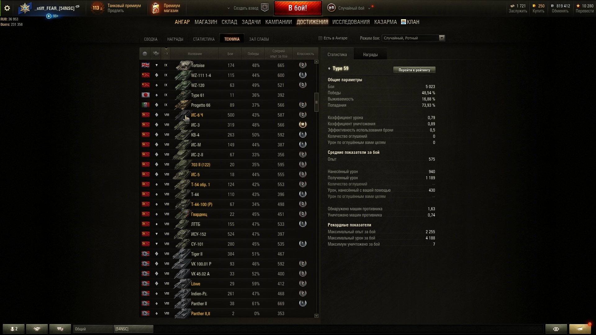 48% побед и 533 средний опыт, и реально складывается ощущение что в плохой команде против сильных игроков.