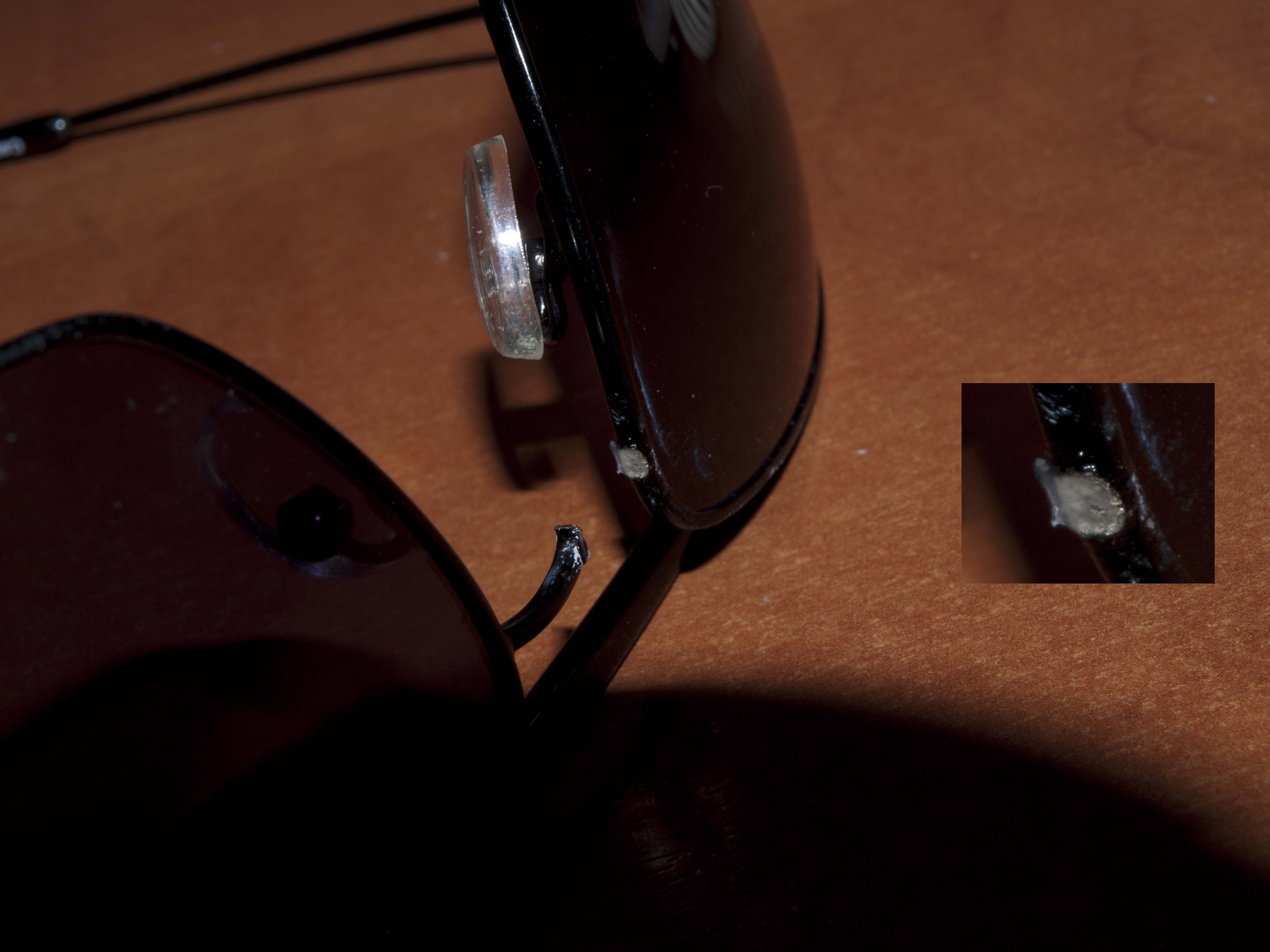 Да: посмотрел внимательнее - оказалось, что оправа металлическая. А такая лёгкая, блин, что даже не скажешь... На днях повезу в vision-express, чтобы они пайку сделали.