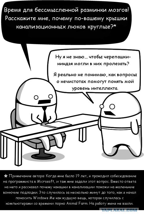 Вам работники вообще нужны? Ну вот он я. Работник. Именно меня стоит выбрать хотя бы потому, что я явно умнее всех тех, кто заливал на эти вопросы стандартную чушь. И умнее вас, между прочим, потому что я никогда таких дурацких вопросов бы не задал.