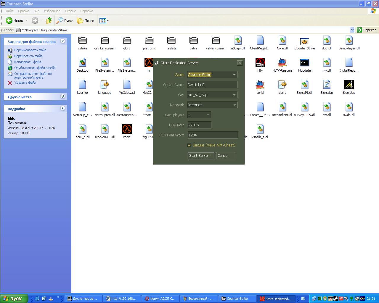 Потом заходиш в КС по-обычному и в консоли пишешь connect 192.168.1.2:27015