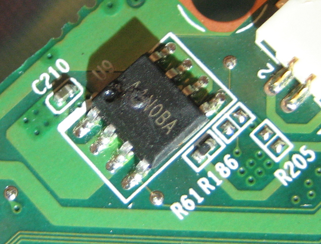 если всё так то выпаивай чип и ставь перемычку / предохранитель между 2-3 и 6-8. |