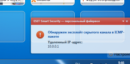 Сеть -> Персональный файервол -> Дополнительные настройки и IDS и снимаем галочку с "Показывать уведомление при обнаружении атаки".