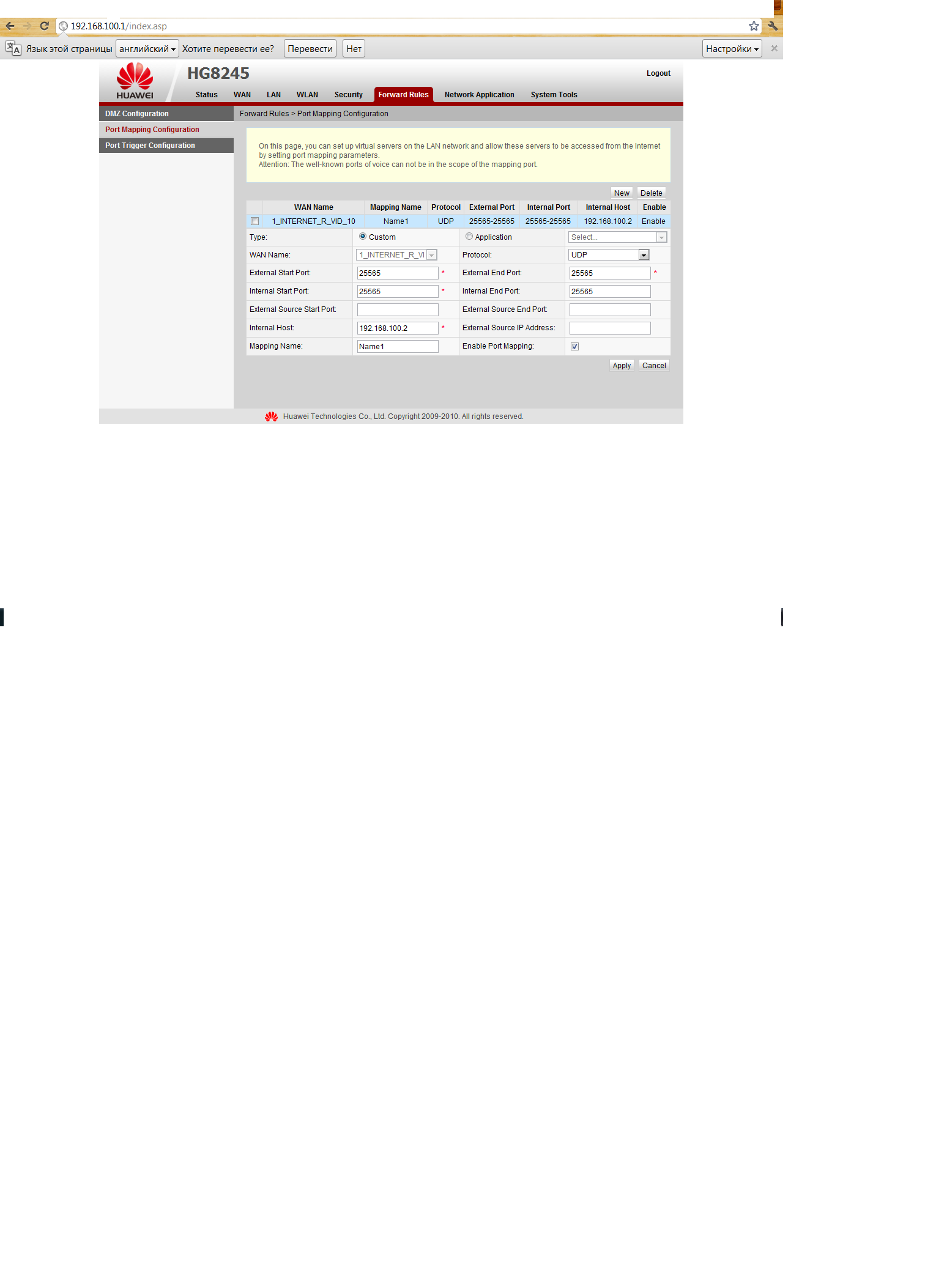 СообщениеДобавлено: Сб 9-06-12 : 20-31    Заголовок сообщения: Помогите открыть порты на модеме huawei HG8245 Ответить с цитатой