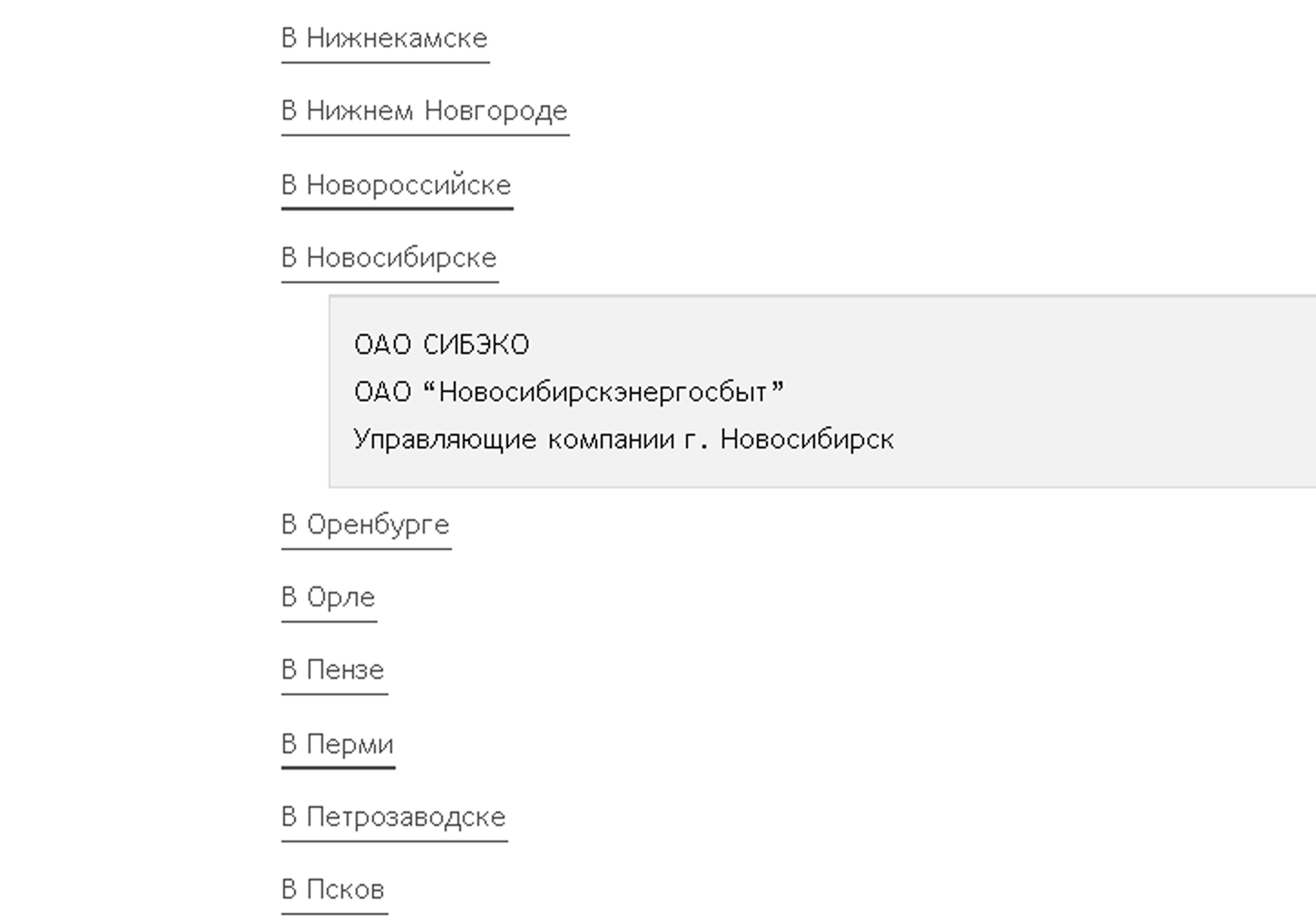 | в разделе ЖКХ-Новосибирск есть только Энергосбыт..., типо других снабжающих организаций в нашем городе не обнаружено |