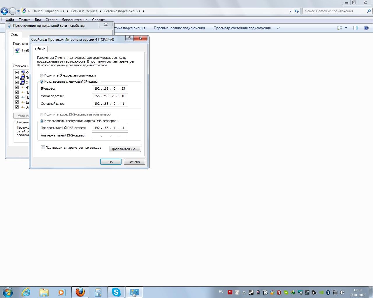 После установки семёрки на комп не реботает интернет, более того я даже не могу зайти на АДСЛ модем по адрессу 192.168.1.1, хотя визуально модем работает.