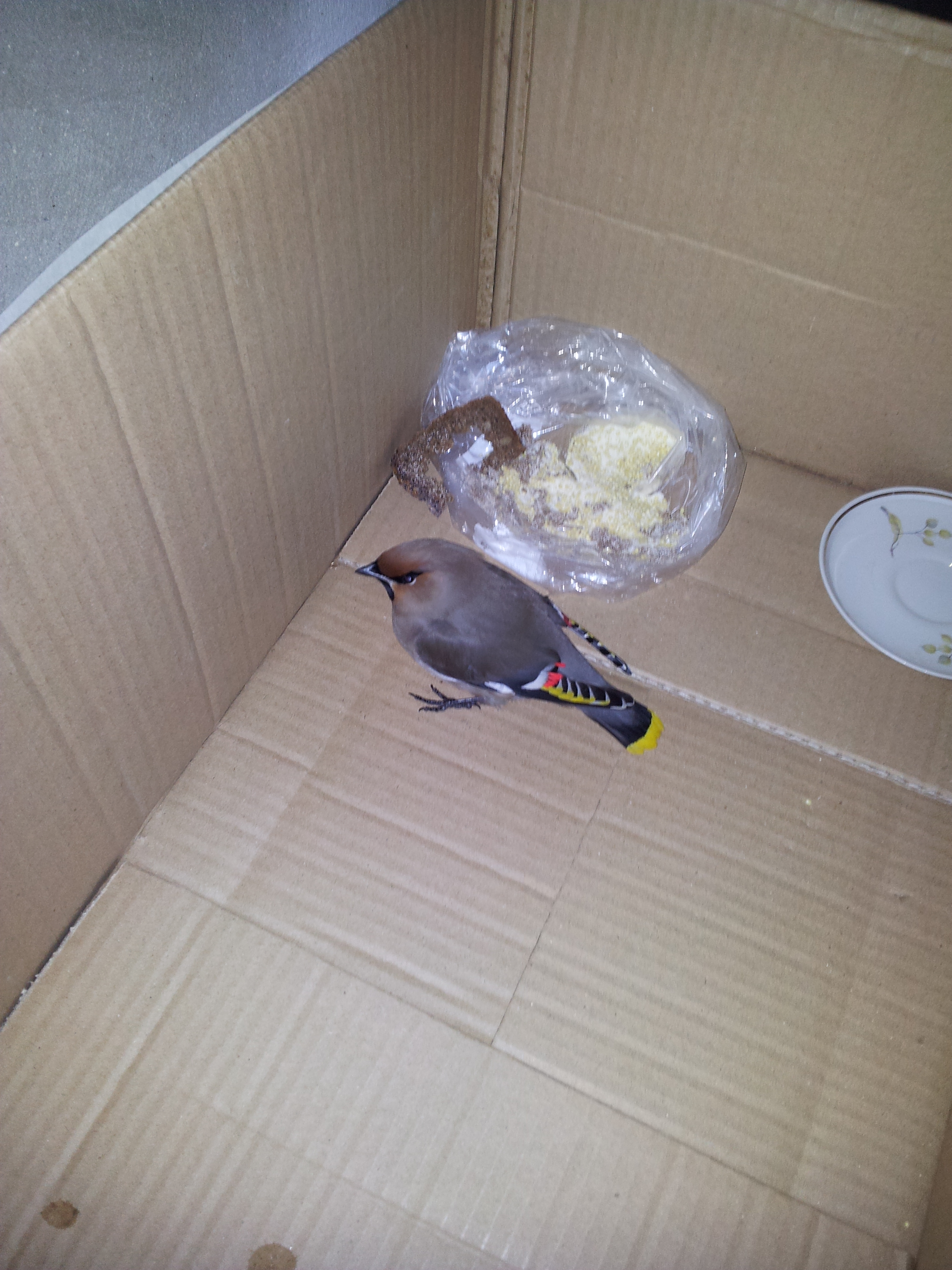 | Вообще то, эти птицы дикие. Летом живут в хвойном лесу, стаями, а зимой прилетают в город, чтоб поесть рябину. Получается отбилась от стаи. возможно раненая, или больная. |