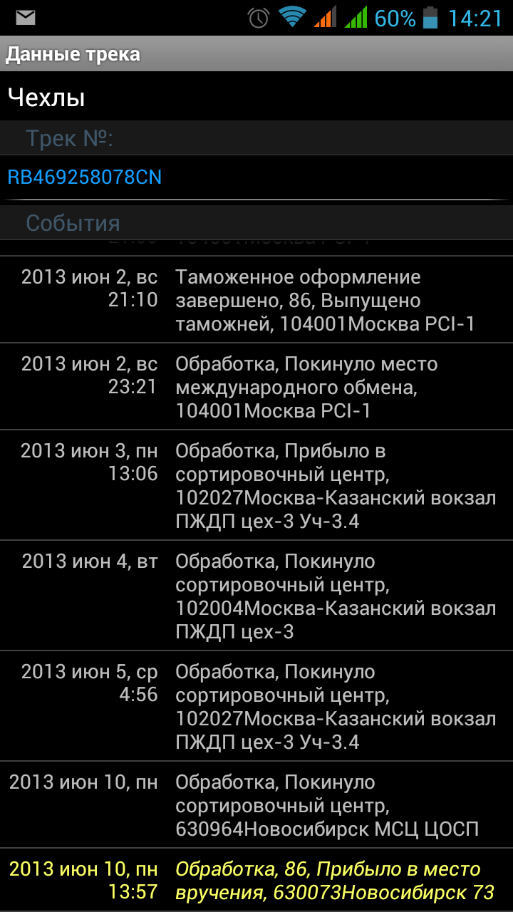 | моя вчера прошла таможню в Москве, сегодня наверно в сортировочной за светится.Последний раз редактировалось: serg504 (Пн 17-06-13 : 22-44), всего редактировалось 2 раз(а) |