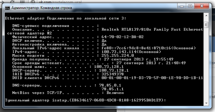 "IPv4-адрес.....: 100.73.0.0 <Основной>" (тоже вместо нулей, разные цифры после каждой перезагрузки компа)