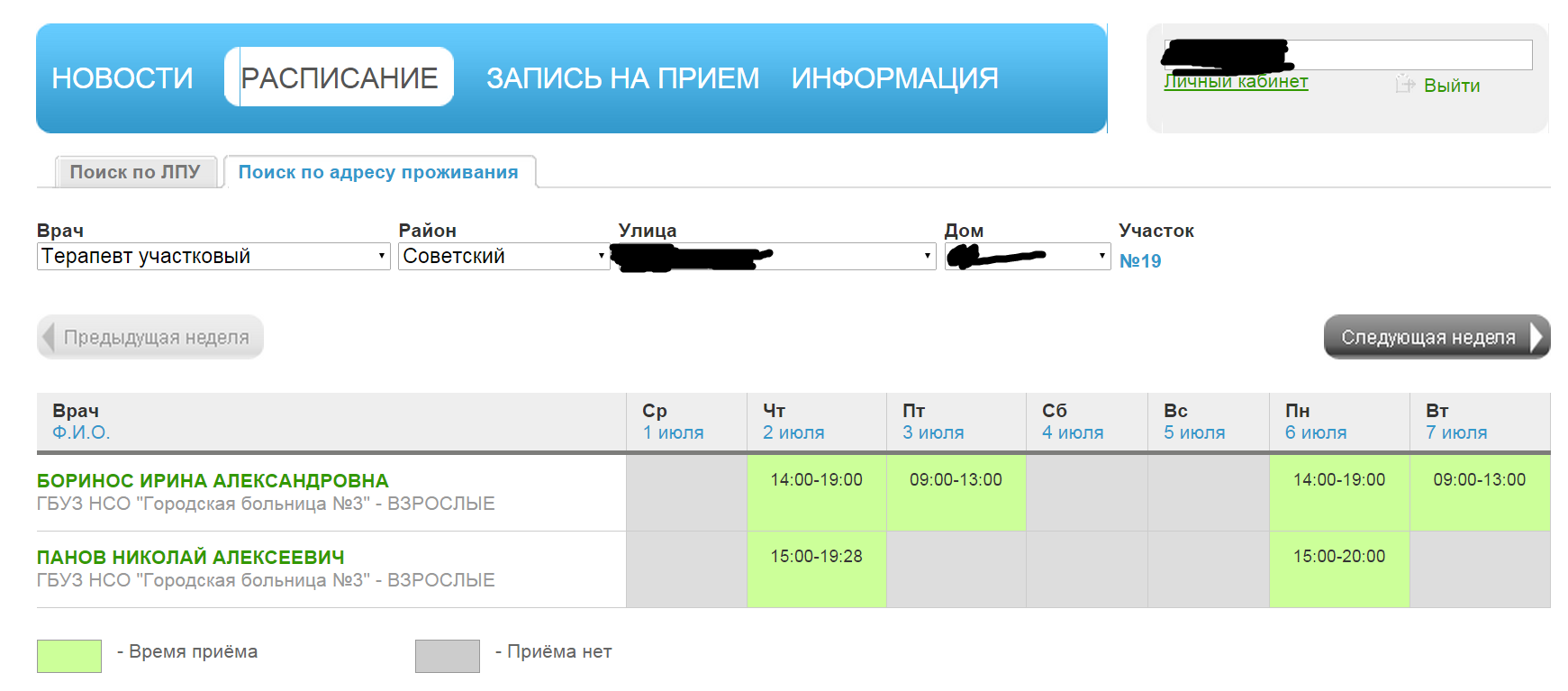 Заходишь в регистратуру, и выбираешь свою, поликлинику, и начинаешь смотреть.