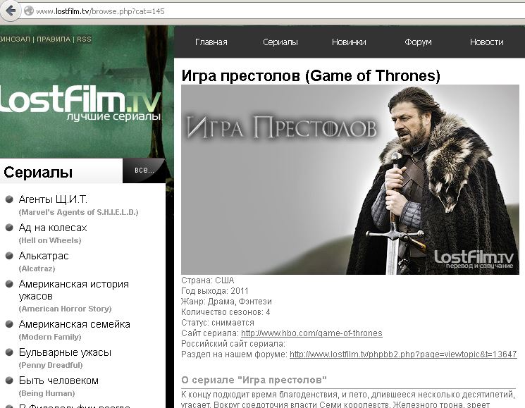 This page (http://www.lostfilm.tv/) is currently offline. However, because the site uses CloudFlare's Always Online™ technology you can continue to surf a snapshot of the site. We will keep checking in the background and, as soon as the site comes back, you will automatically be served the live version. Always Online™ is powered by CloudFlare | Hide this Alert |