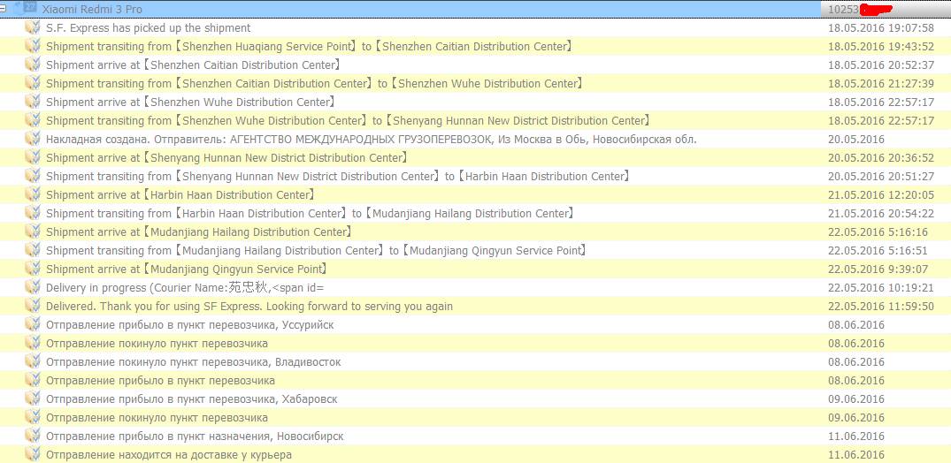 Когда я делал заказы , по России все шло довольно быстро , в течении недели , а вот до границы шло медленно + на некоторых посылках трек не отслеживался , хз почему . Еще по одной посылке трек отслеживается и по треку посылка еще до таможни даже не дошла , а мне ее уже отдали в руки на нашей почте , я уже спор даже открыл с китайцем , сперва думал меня обманули . |