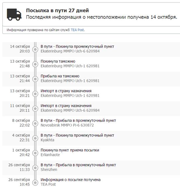 Как я и писал выше - наша таможня перегружена и чтобы уложиться в сроки доставки часть посылок переправляют на другие таможни, в том числе и в Е-бург. В результате до адресата в конечном счете дойдет быстрее. |