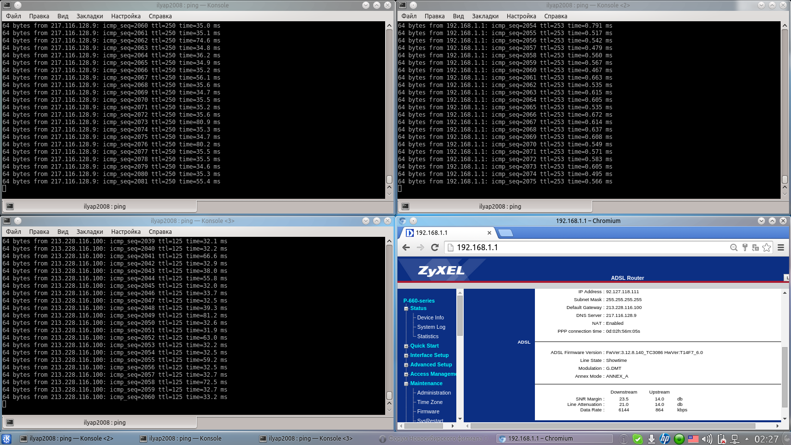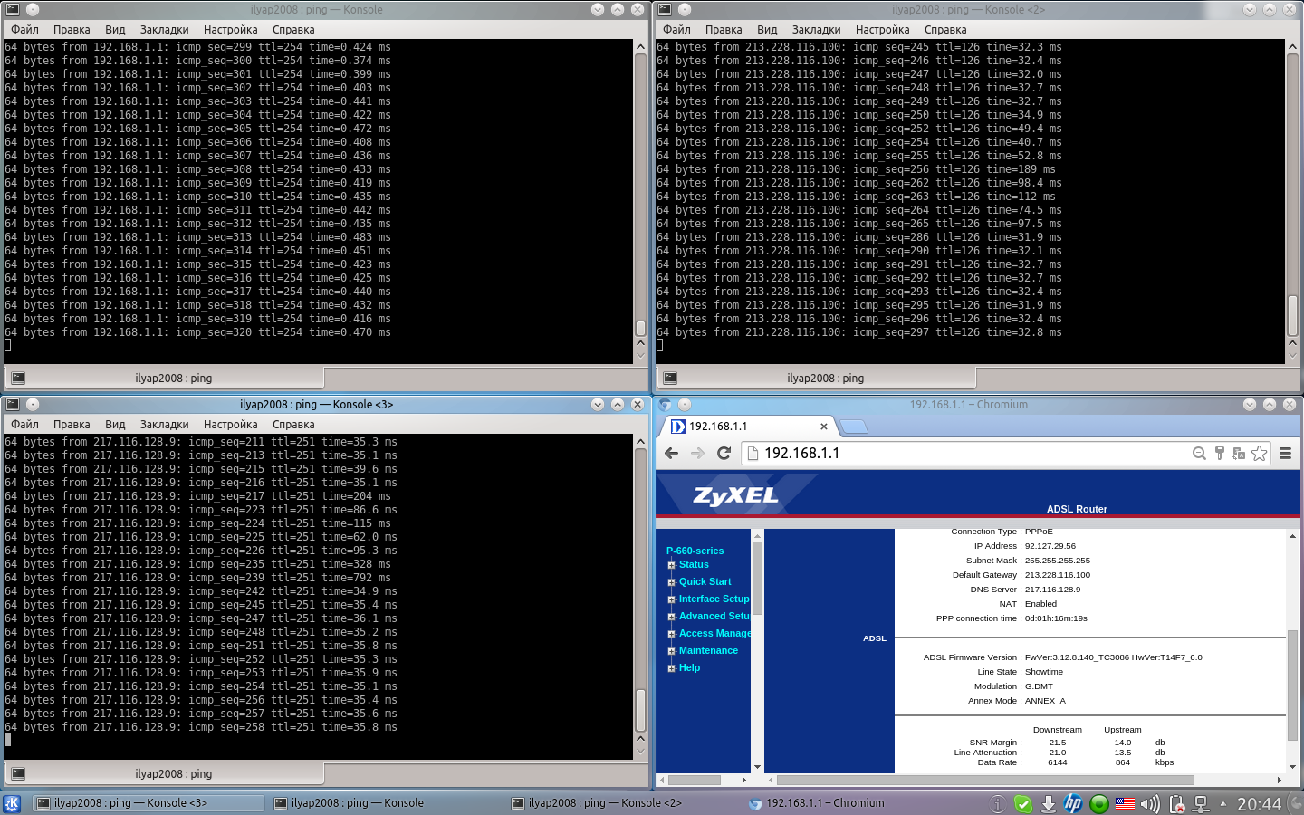 В промежутке с 14.00-24.00 отказывается работать интернет. Хотя модем утверждает, что у него всё ок... И линия с норм показателями... И соединение стабильно... (Сможете сами оценить... Скрины прилагаются)...