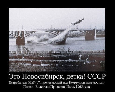 Картинка фотомонтаж, а случай этот был действительно. Привалов пролетел под мостом у нас. И даже не очень то его и наказали за это. Пролет осложнялся наличием ЖД моста, нужно было уйти вверх сразу после пролета под Октябрьским. |