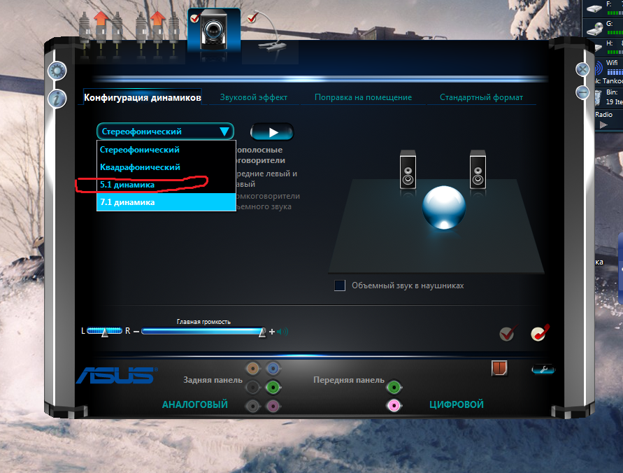 Блин еще раз вам картинка на компе. там стоит 5.1 или стерео или 7.1 . куда вы уперлись то уже в дебри? |
