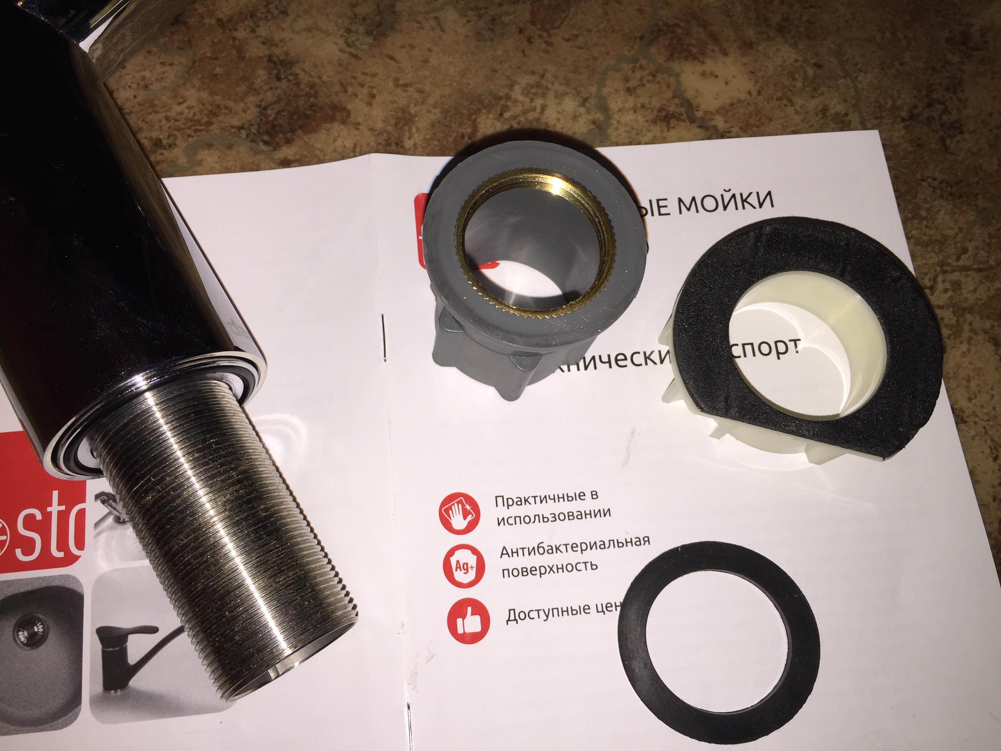 Мойка из искусственого камня! Вопрос надо ли резиновую шайбу под гайку подкладывать или она для металлических моек и надо ли эту приблуду на скотче к мойке приклеивать или она только для металлических тонких моек?