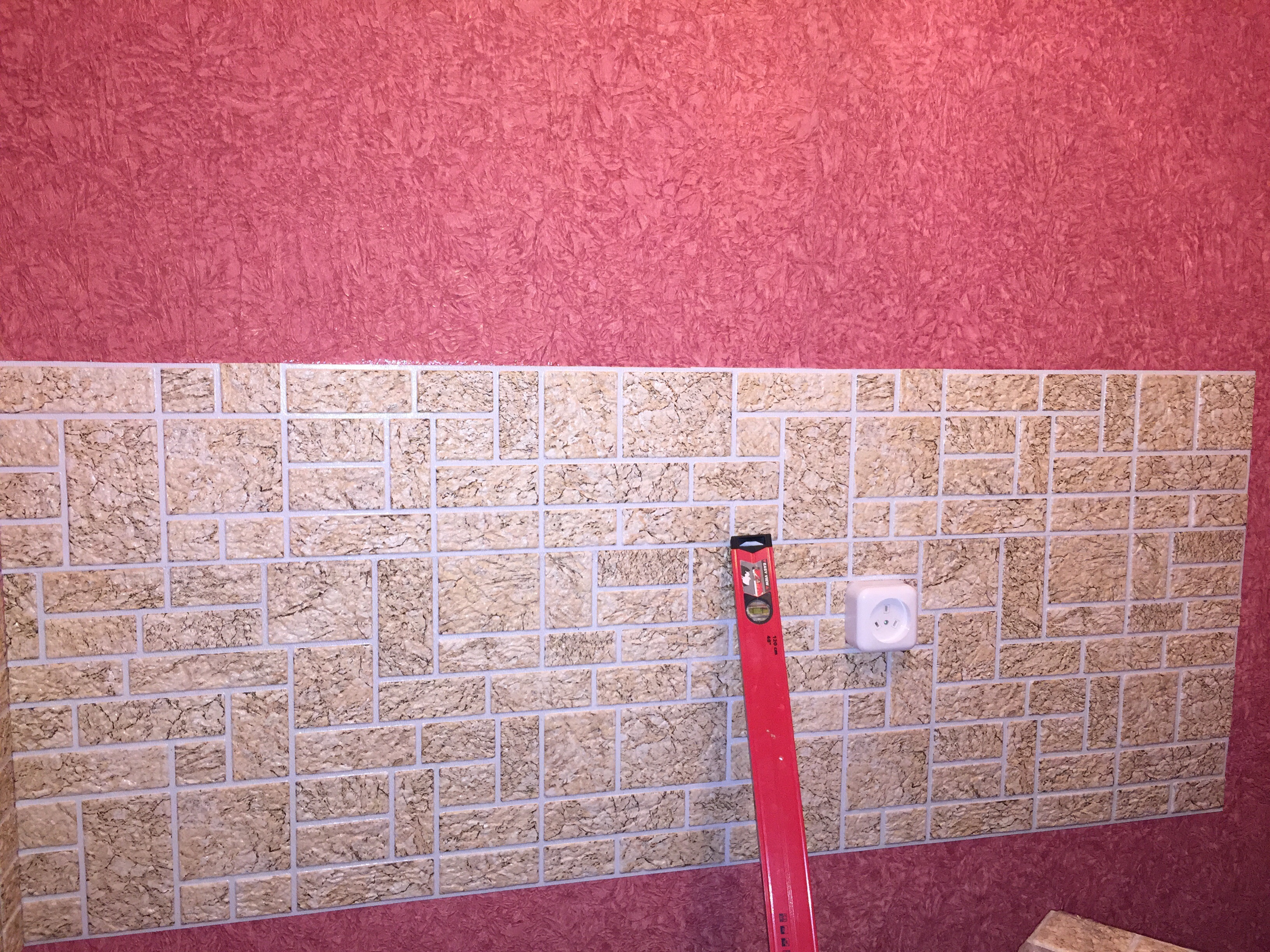 Да пофиг ! Смотрится вблизи как будто камень будет желание потом отдеру плитку кафельную наклею сейчас заморачиватся неохота с пылью только недавно туалет , ванну закончил задолбался эти мешки с клеем 25 кг таскать