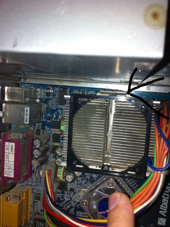 вниз к материнке надавливаешь и в сторону бп все слазит с крепежа, ))) пластина имеет пружинность не бойся. смелее.))) |
