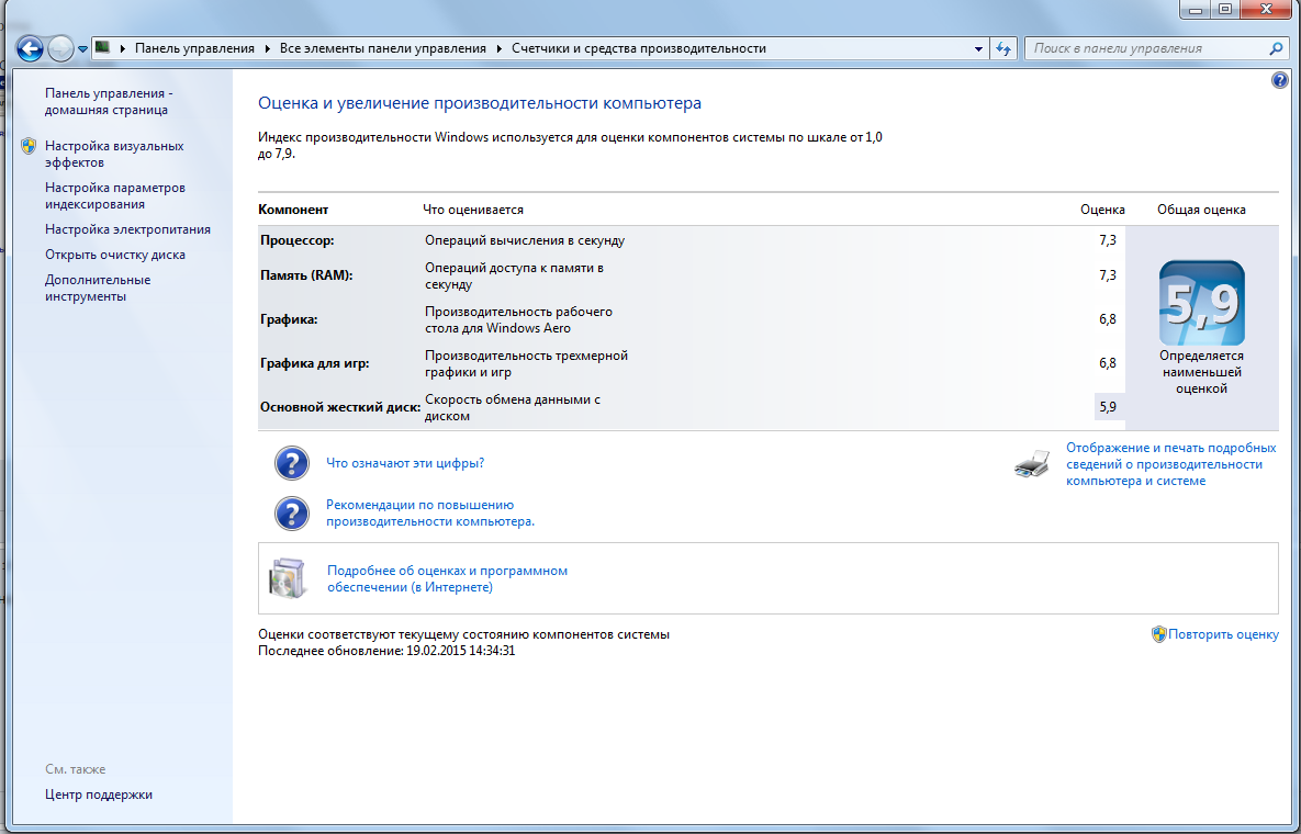 | Потому что вин7 меряет по наиболее слабому компоненту. В данном случае HDD |
