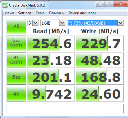 CrystalDiskMark этой прогой прогони тест скорости