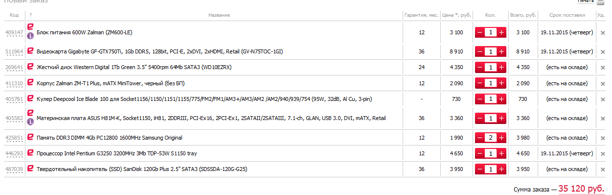 | купи у меня готовый с монитором за 18т.р. (i3-4130, 8gb,1tb, 21.5 дюйма диагональ монитора) докупи видеокарту и бп помощнее (родной на 450) |