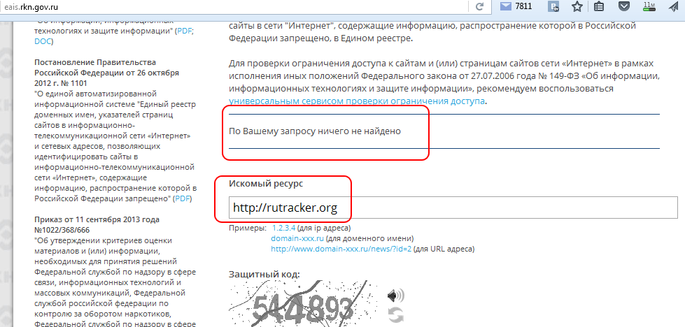 на http://eais.rkn.gov.ru - "По Вашему запросу ничего не найдено"