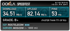 Посоветовали Ростелеком знакомые ( живут в другом районе, живут в другом районе , точно такой тариф как у меня ,пара результатов