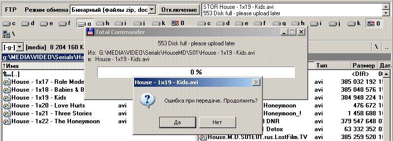 Мне Тотал говорит: "553 Disk full - please upload later" |