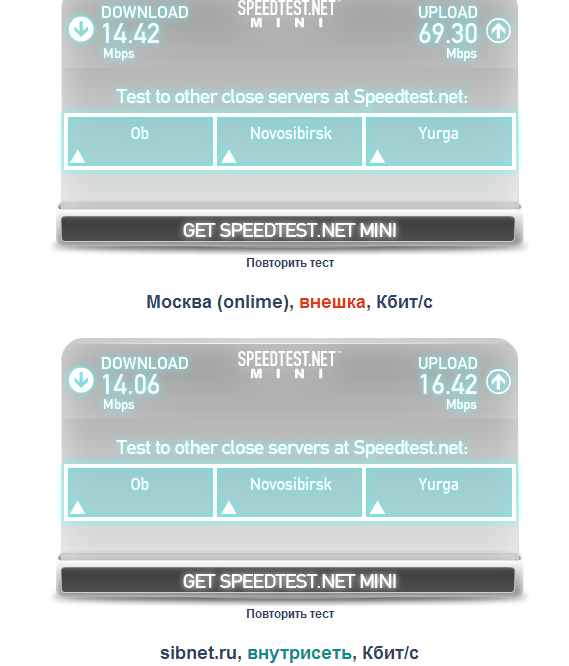 Измерения на сайте http://www.speedtest.net/ru/ |