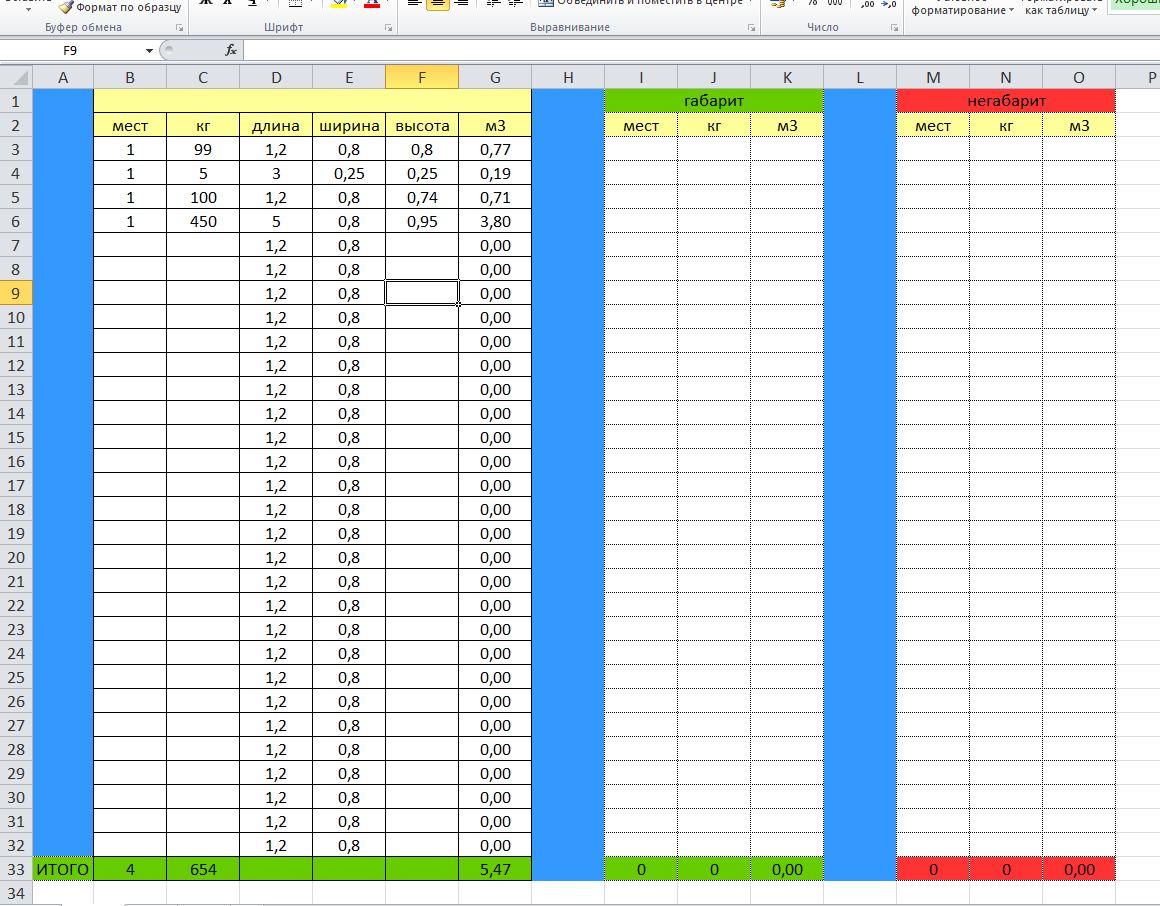 нужно чтоб она автоматический вычисляла габаритный груз и не габаритный и проставляла в нужный столбик