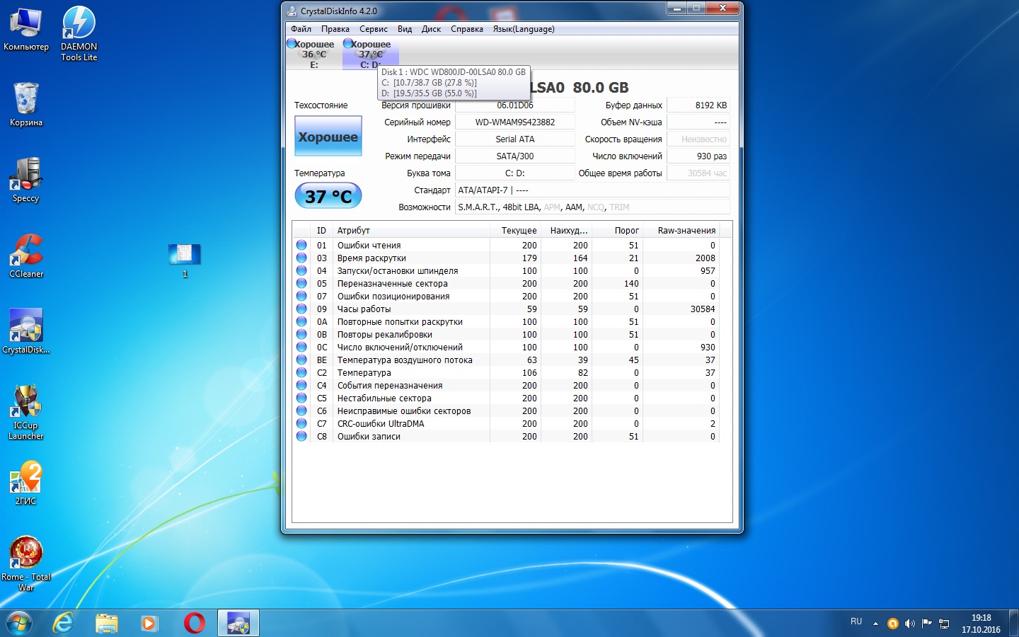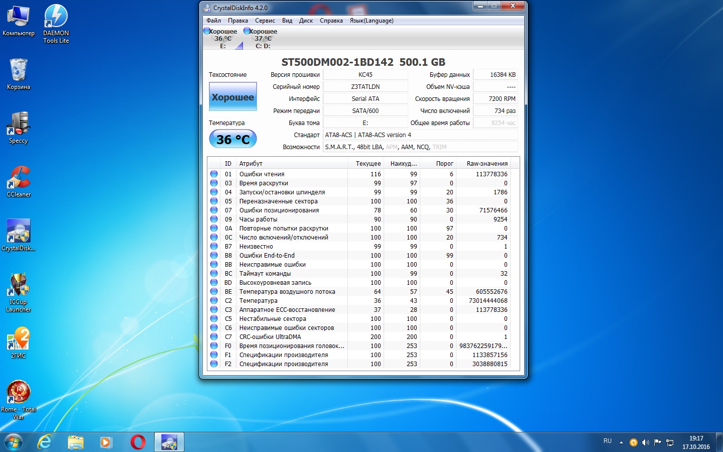 У меня диск показывает здоровье плохо))) после паления ноута, поставил в стационар так как в ноуте работать не захотел он дальше, стоит под торренты 2 года уже жду когда совсем помрет)))