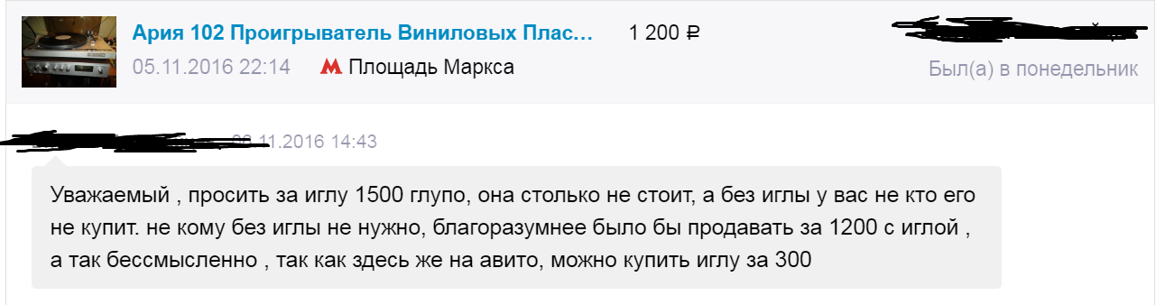 А бывают и ЛС с угрозами типа убери с продажи или ...., или поставь цену больше моей и не борзей.