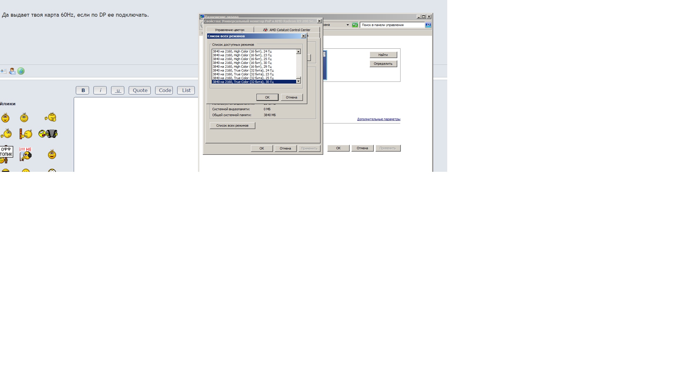 Причем тут моник, он то как раз по всем входам, окромя аналога понимает 60Hz, а вот его видюха искомые 60 выдает только по DP. |