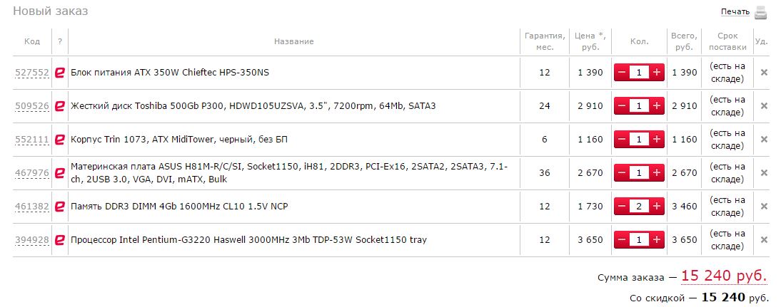 Прошу учесть, что в оговоренный бюджет входит, сборка системного блока из Ваших комплектующих, установка системы, ключевых программ офисного ПК, настройка до достижения уровня отвечающего : " Главное требование: ".. что бы все работало, без тормозов и глюков..." ", транспортировка системного блока до адреса, установка, демонстрация на месте, получение денег, откланивание с предоставлением разумных гарантий на сделанный ПК