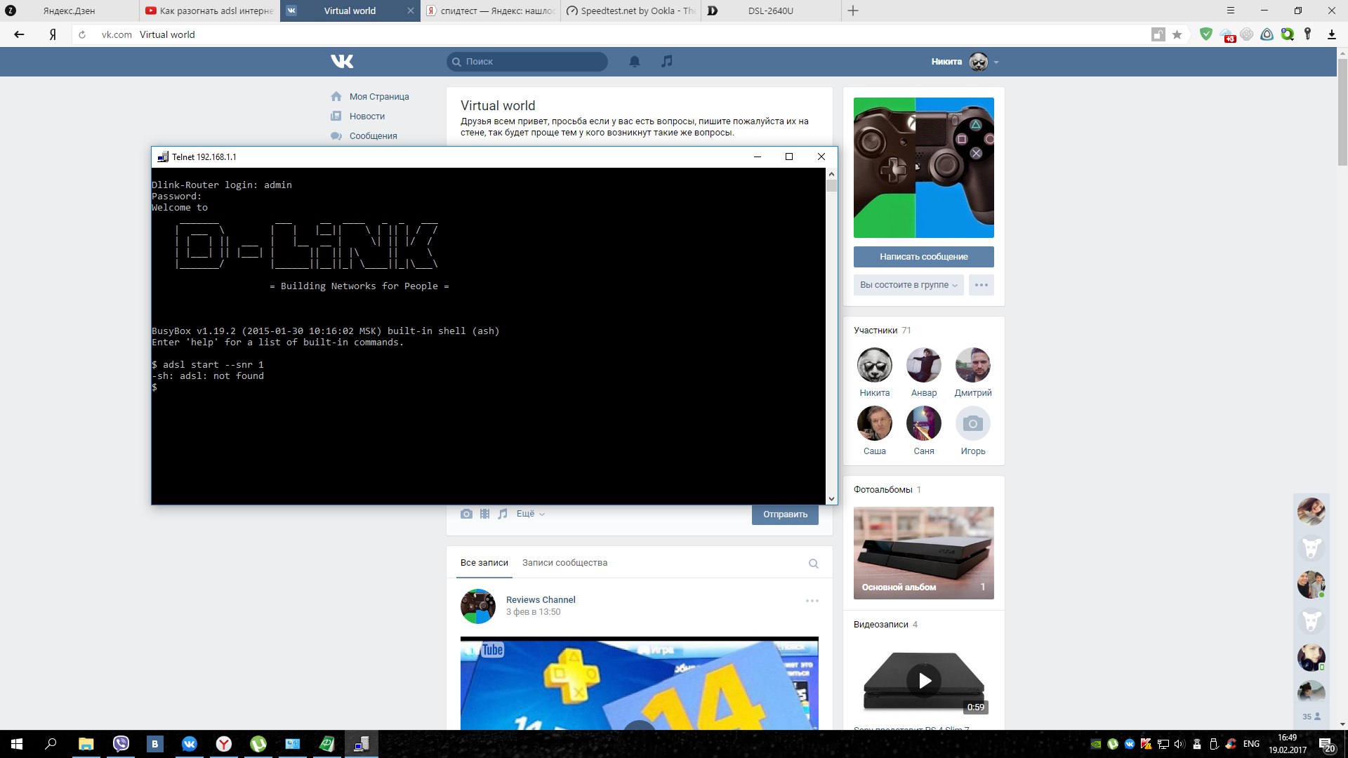нашёл на просторах интернета команду adsl start --snr 1 через телнет якобы она увеличивает пропускную способность у меня заявленная скорость 8 мб а при проверке на сайте спид тест 7мб оказаласть захожу я в телнет ввожу логин пароль модема и выскакивает ошибка как на скрине скрин пррилогаю подскажите что сделать