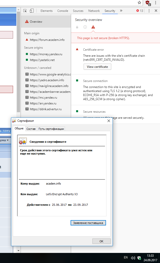 походу у академа отвалился скрипт/клиент Let's Encrypt, который должен периодически обновлять сертификат на веб-сервере.