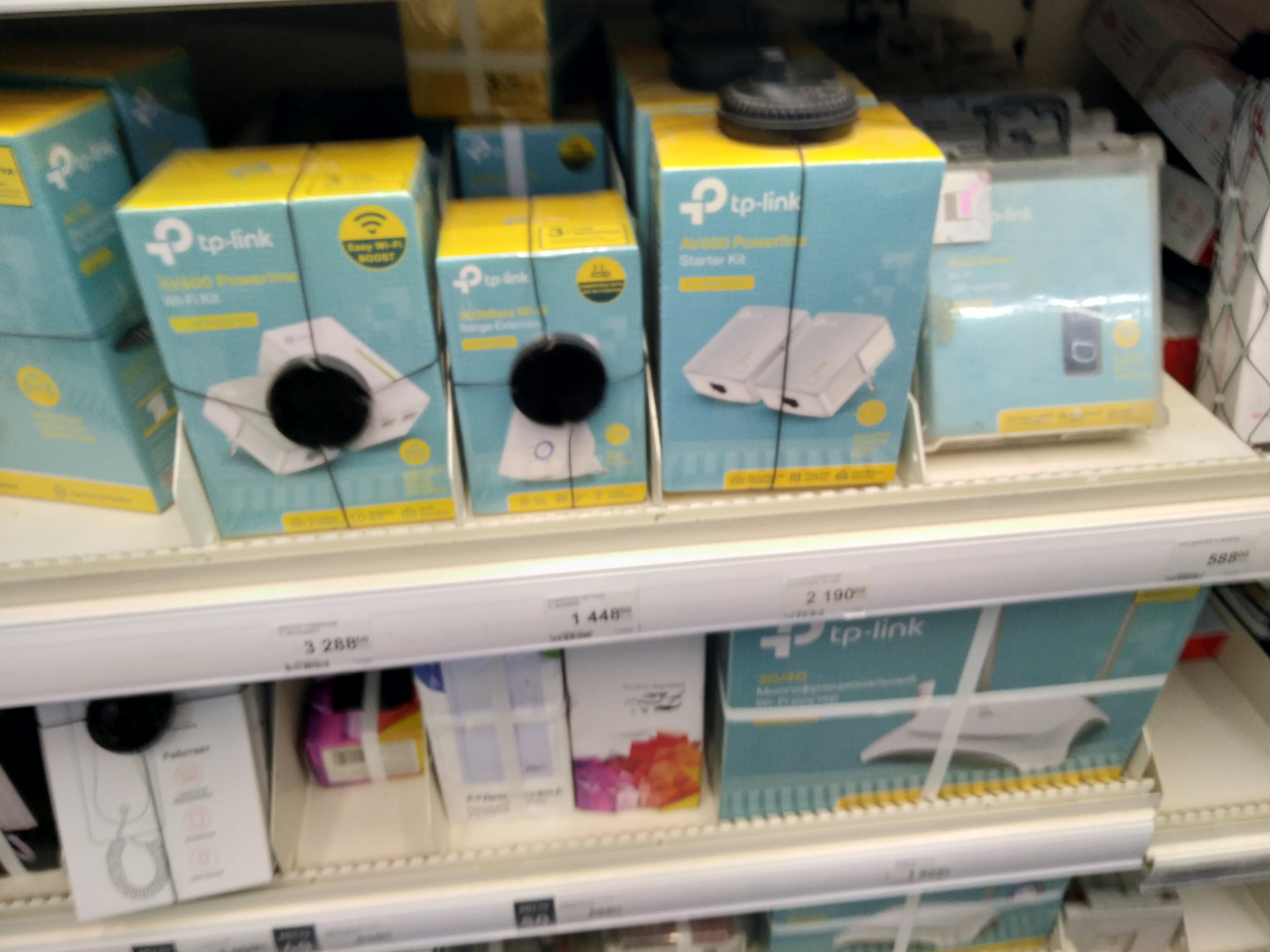 Забавная история. Сегодня был в Леруа Мерлен. Каково же было мое удивление, когда я в отделе где всякие там системы видеонаблюдения, видеодомофоны, звонки и тд увидел ПОЛКУ тплинковых поверлайн адаптеров )). И по моему с весьма неплохой ценой (ну блин разннобразие то какое в РОЗНИЦЕ в магазине для строительства). Прикладываю фото.