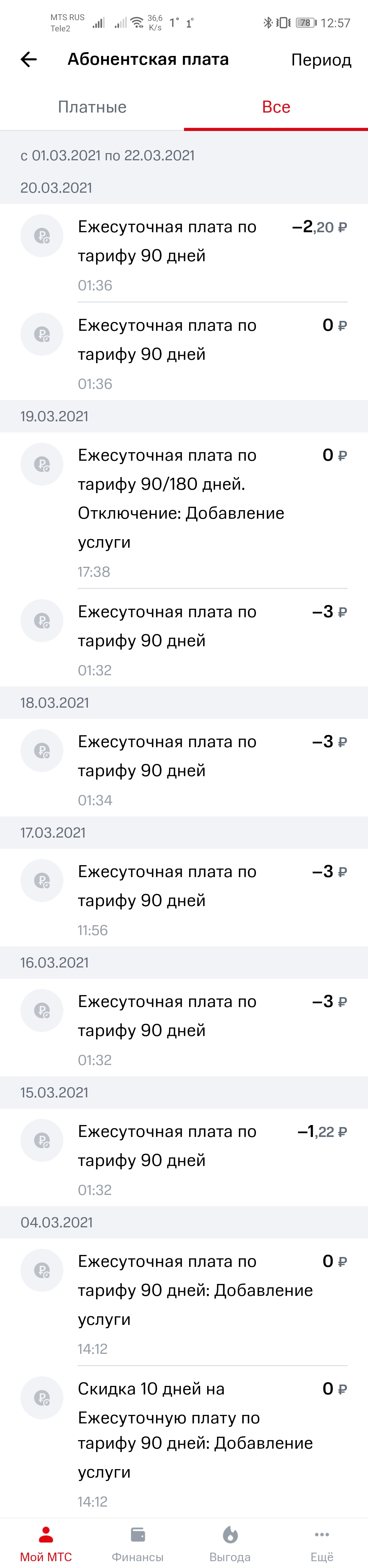 а у меня норм, просто бывают ежемесячно списания, когда абонент не МТС