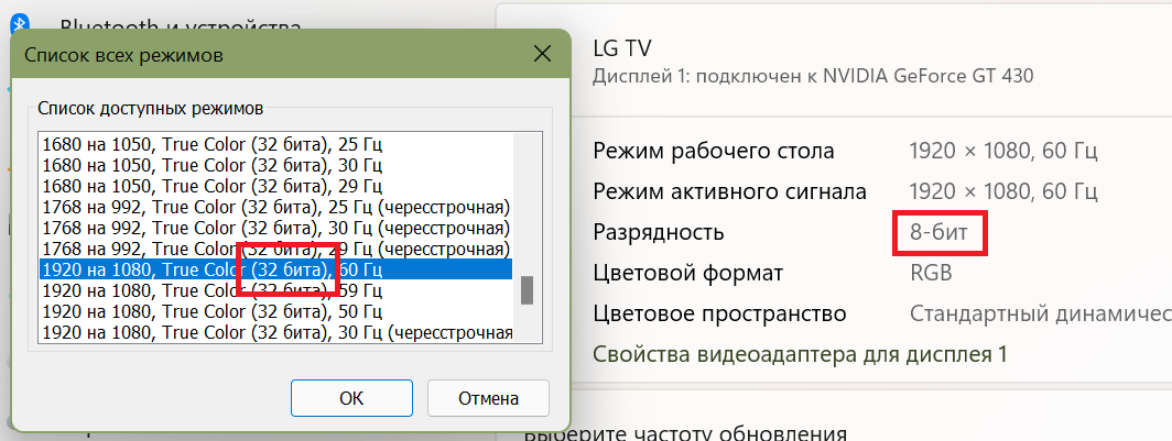 8 - это разрядность цвета. RGB да четвертый цвет, альфа-канал, отвечающий за прозрачность, и дают 32 вместе. |