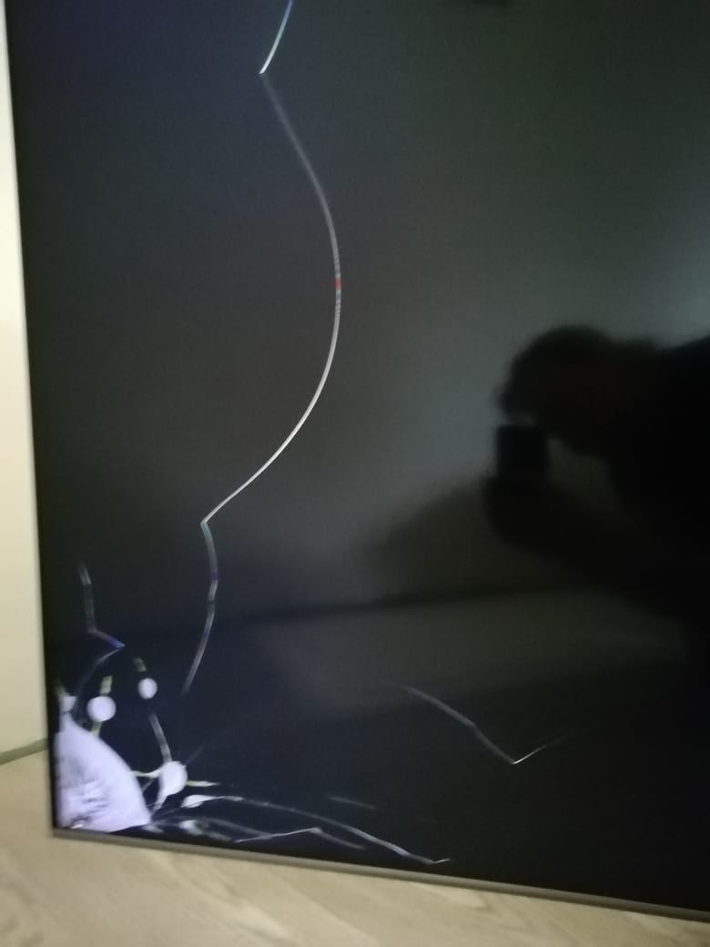 У знакомой вот такой дефект появился, говорит все что сделали это с тумбы перевешали на стену. Не били, не роняли. При включении моргнул белым и появляются вот такие пятна-полосы на 1-2 секунды. Трещин никаких не видно на выключенном.
